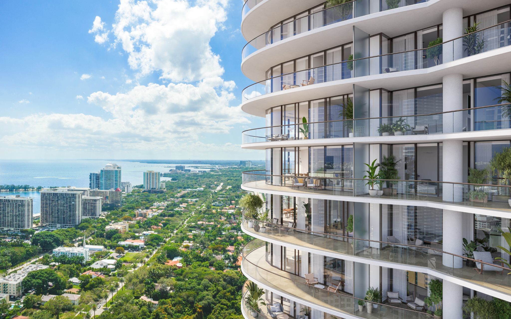 After a day’s worth of activities, residents can unwind on their terraces and enjoy panoramic views of the Brickell skyline and Biscayne Bay.