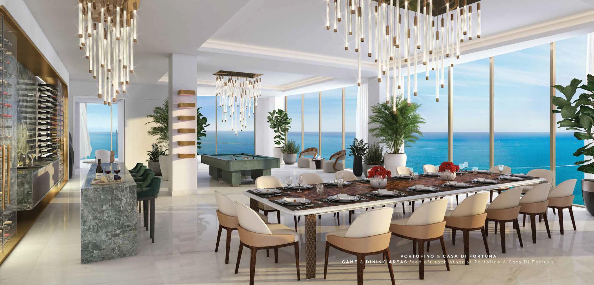 The Estates at Acqualina takes luxury living to the next level, presenting an array of over 50,000 square feet of exceptional amenities - possibly unrivaled in South Florida's condo scene. Revel in an ice skating rink, indulge your inner trader at the Wall Street Trader's Clubroom, test your driving prowess with a Formula One simulator, or refine your golf swing at the golfing simulator. Experience cinematic magic in the private movie theater, savor culinary delights at the celebrity chef restaurant, and dance the night away at the private on-site nightclub.
