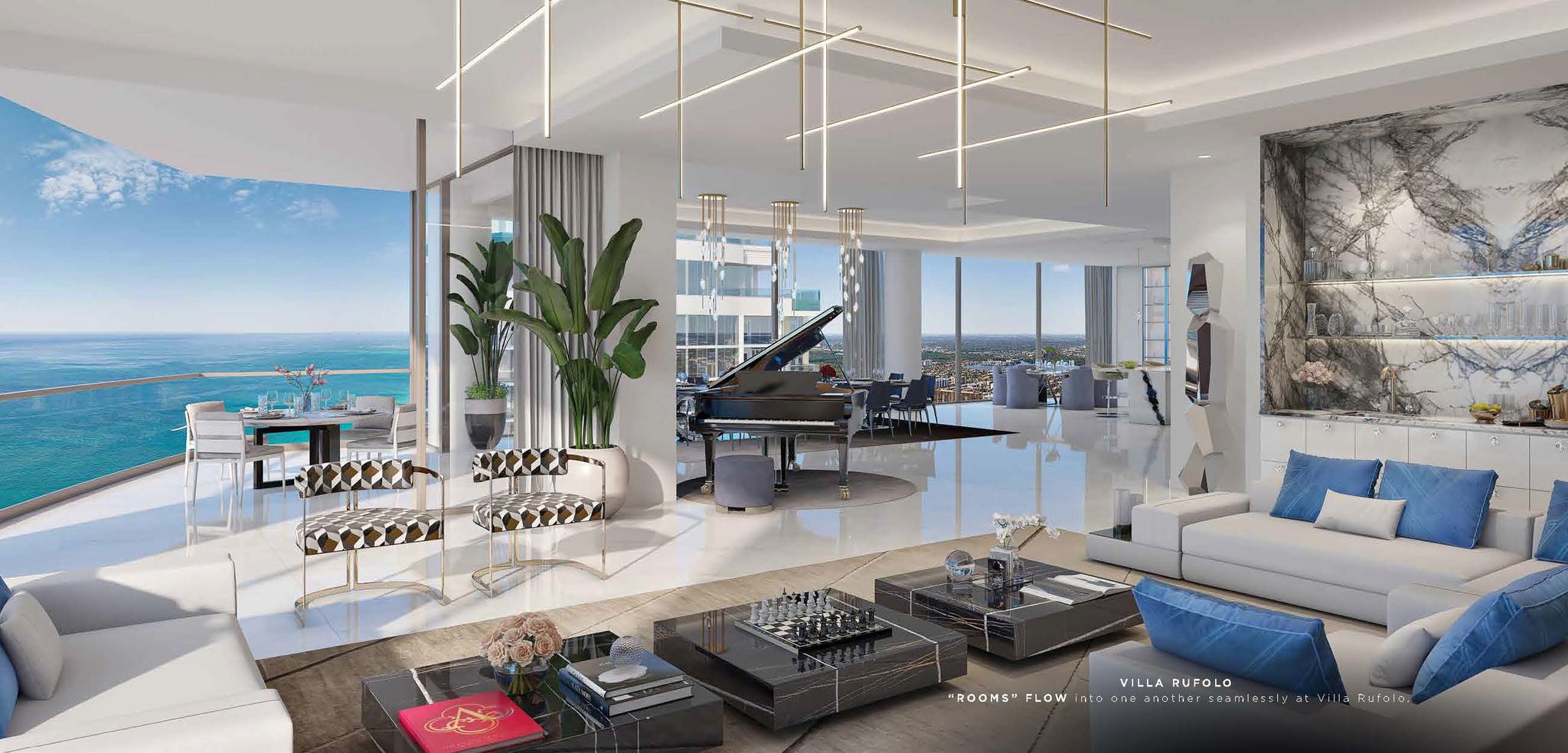 This remarkable enclave offers 245 condo residences, designed to cater to your every need. Choose from three to six-bedroom floor plans, ranging from 3,287 to a sprawling 9,083 interior square feet, with expansive terraces that blends indoor/outdoor living. The south tower or the "boutique tower" adds an extra layer of exclusivity, only housing two residences per floor for most of the tower, a tower suite, and two penthouses. These residences features exclusive amenities such as summer kitchens, separate guest suites, and some even feature pools right on your balcony.